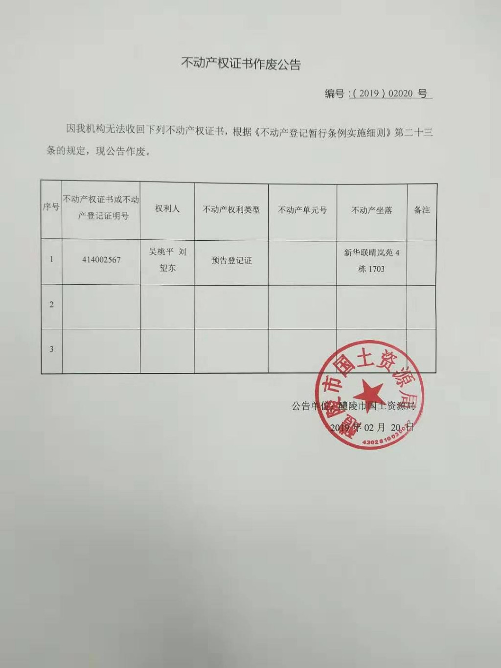不动产权证书作废公告(吴桃平 刘望东)