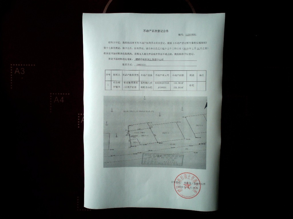 不动产首次登记公告(付会村、何敏华)