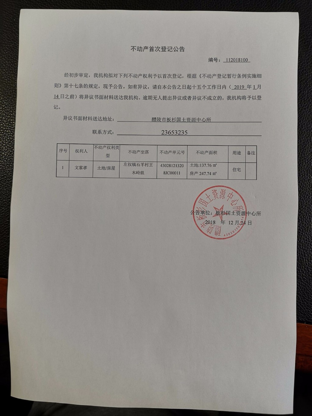 不动产首次登记公告(文家孝)