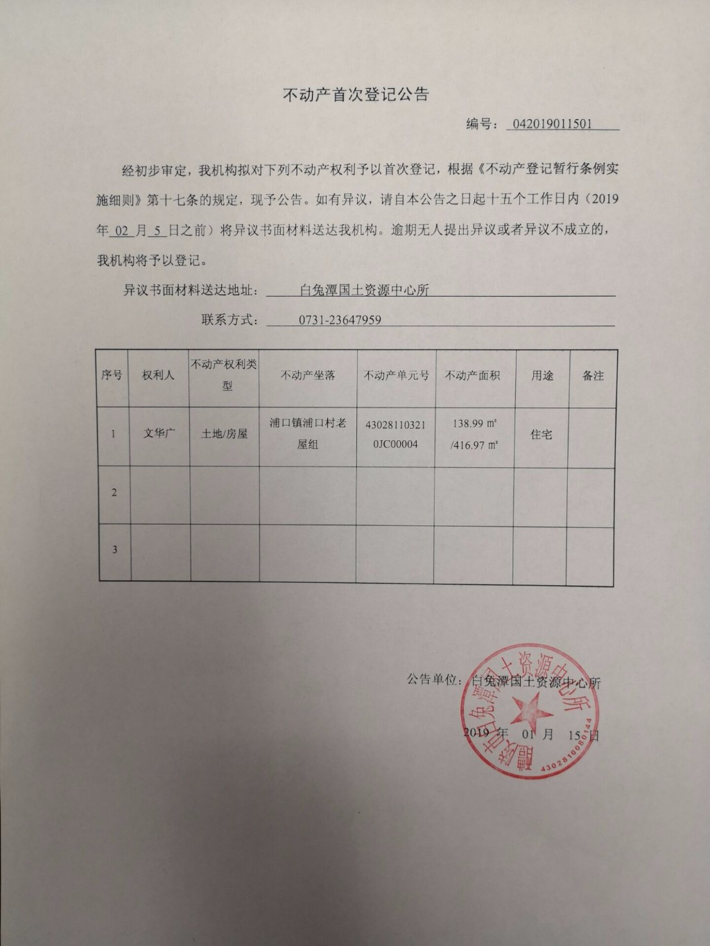 不动产首次登记公告(文华广)
