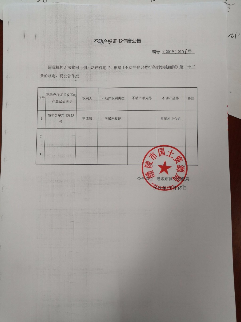 不动产权证书作废公告(王德清)