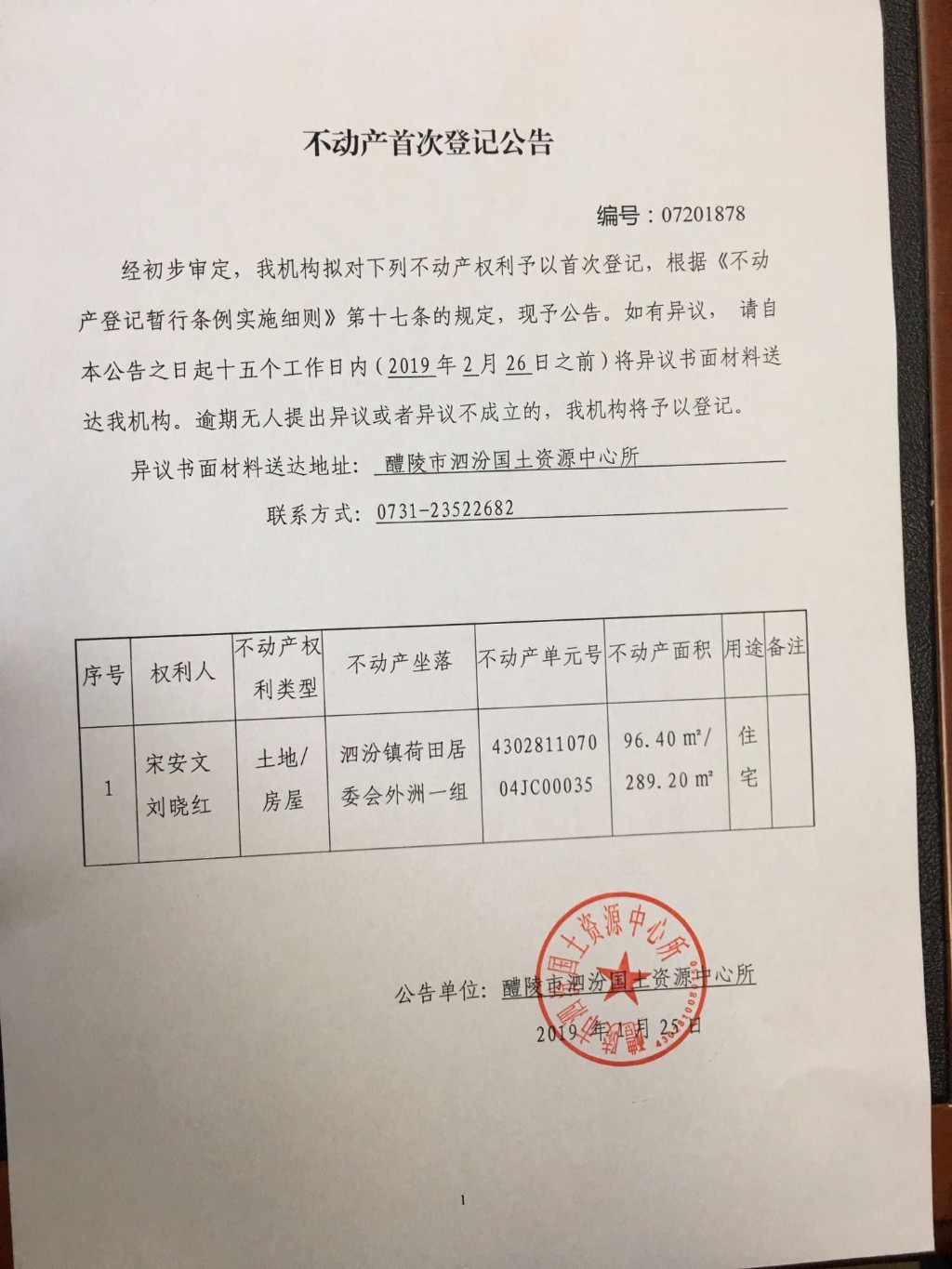 不动产首次登记公告(宋安文、刘晓红)