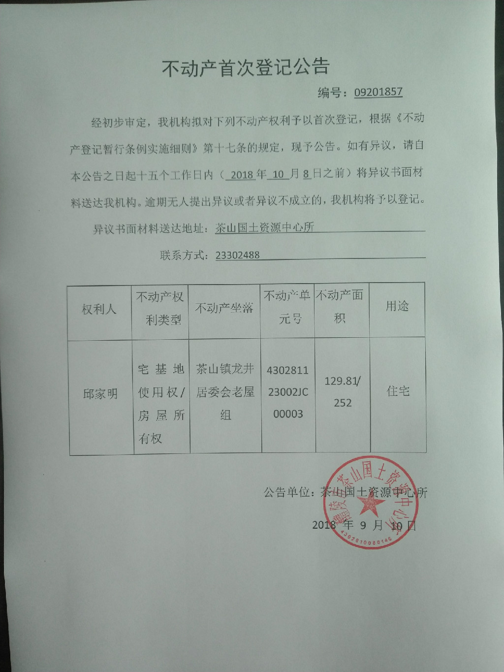 不动产首次登记公告(邱家明)