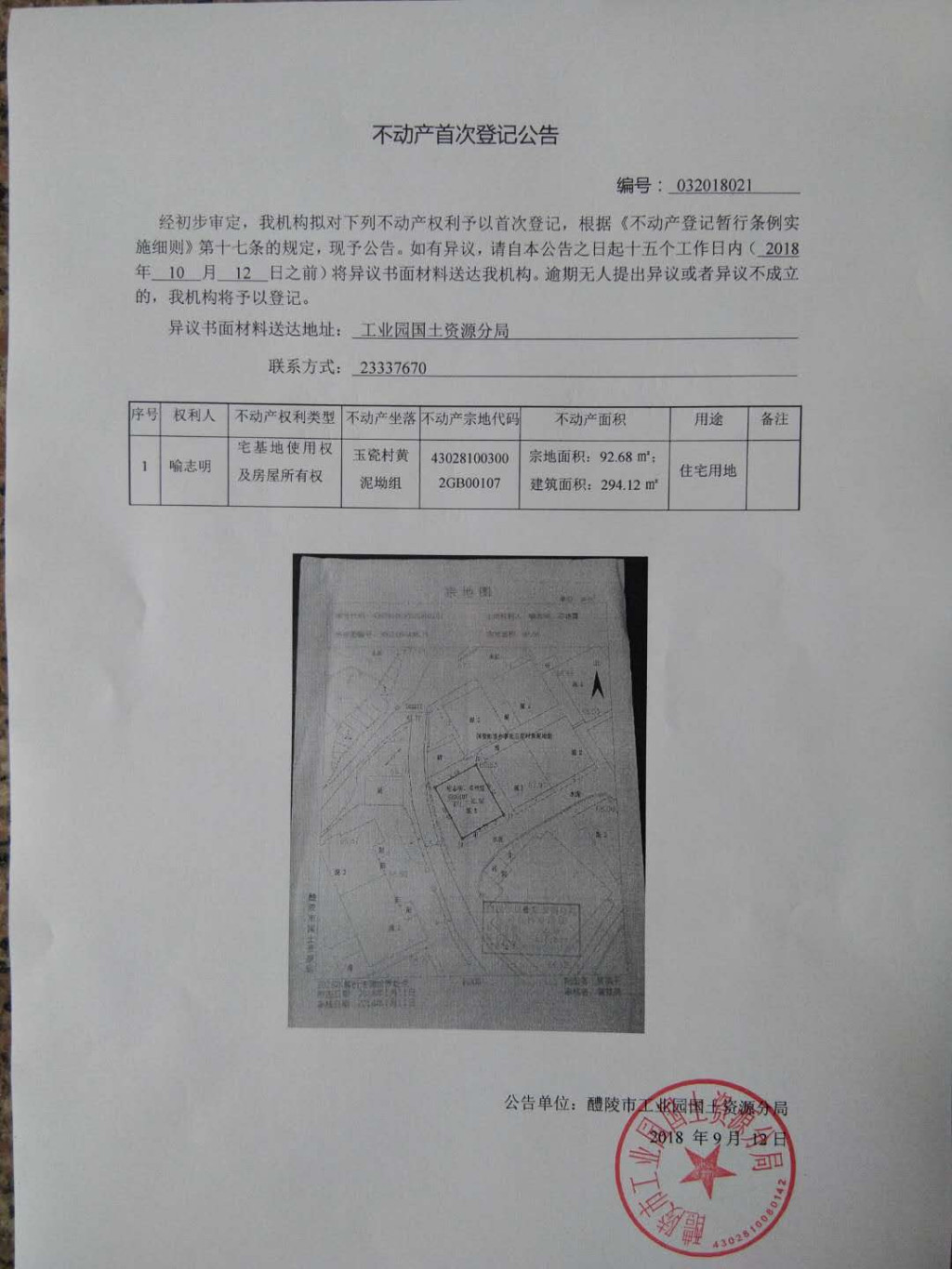 不动产首次登记公告(喻志明)