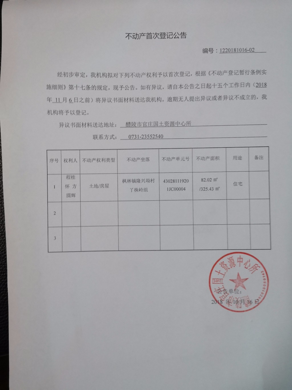 不动产首次登记公告(程桂怀、方圆辉)
