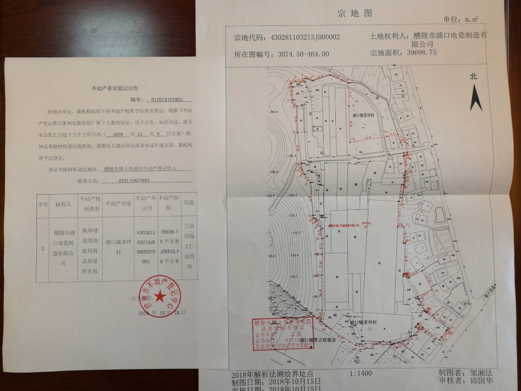不动产首次登记公告(醴陵市浦口电瓷制造有限公司)