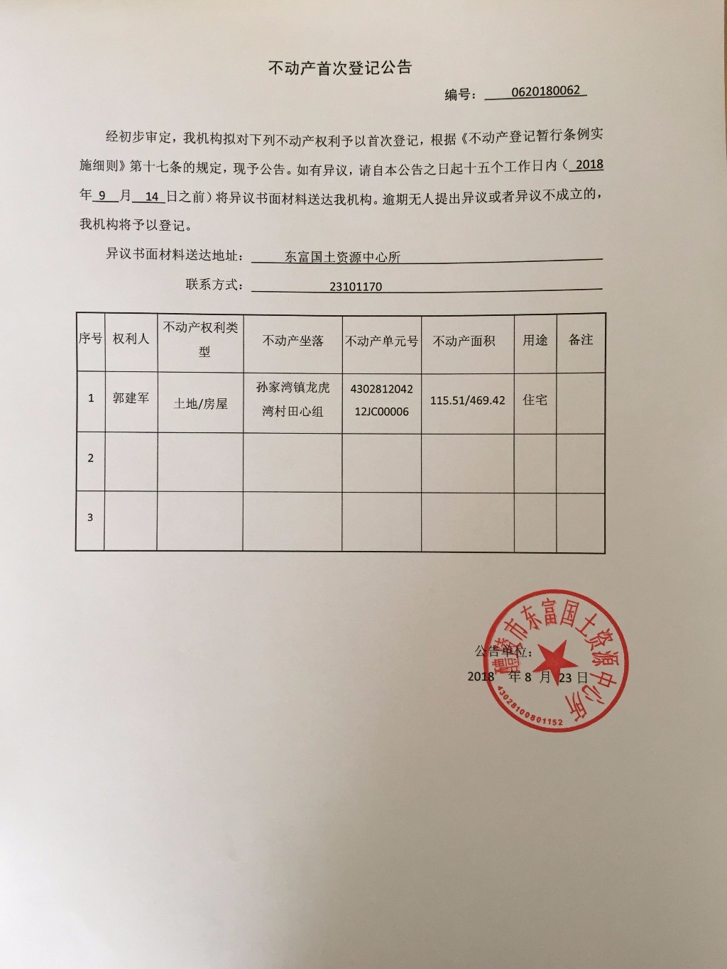 不动产首次登记公告(郭建军)