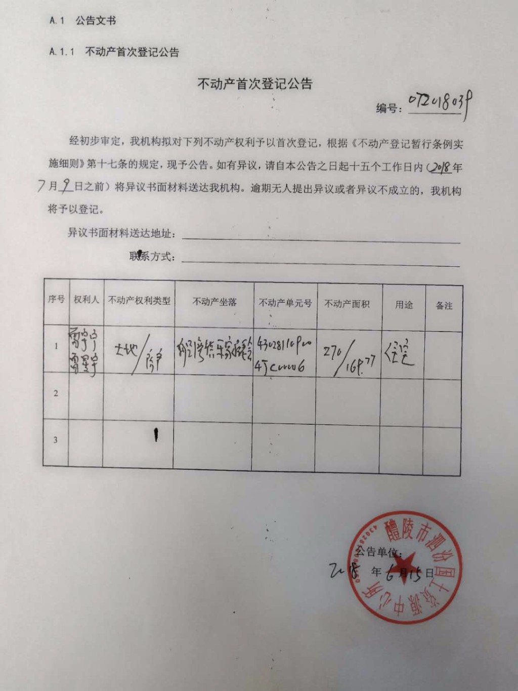 不动产首次登记公告(曾宇宁、曾星宇)