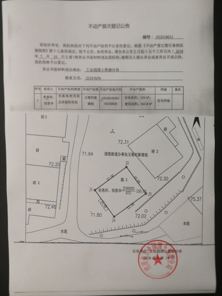 不动产首次登记公告(李勇祥 邹春华)