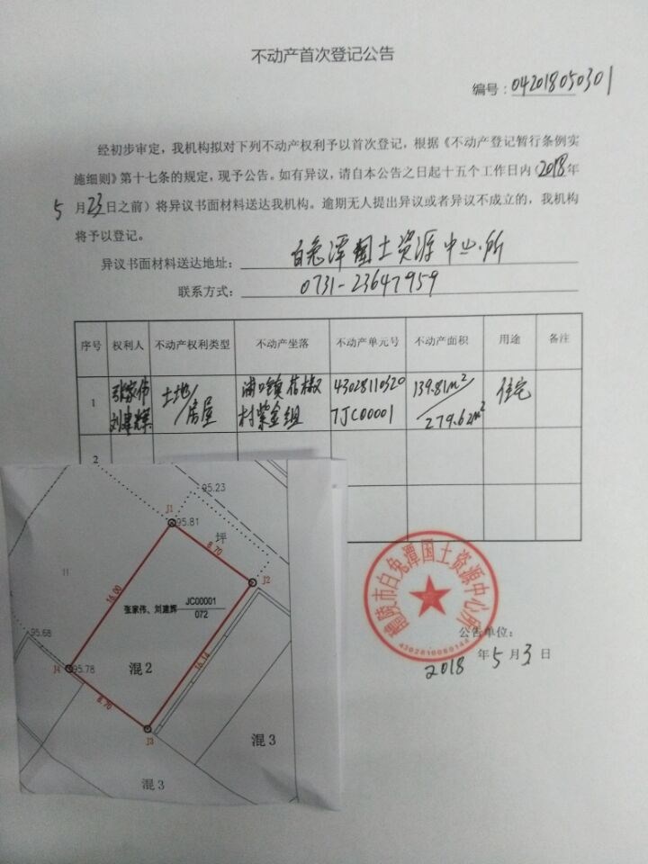 不动产首次登记公告(张家伟 刘建辉)