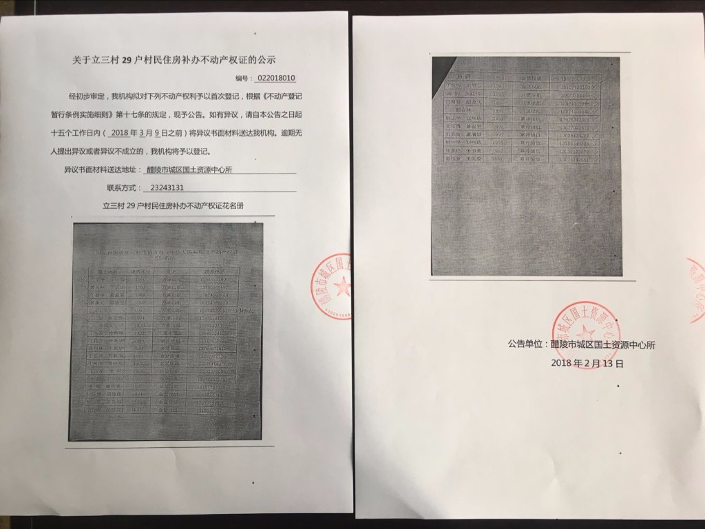 不动产首次登记公告(关于立三村29户村民住房补办不动产权证的公示)
