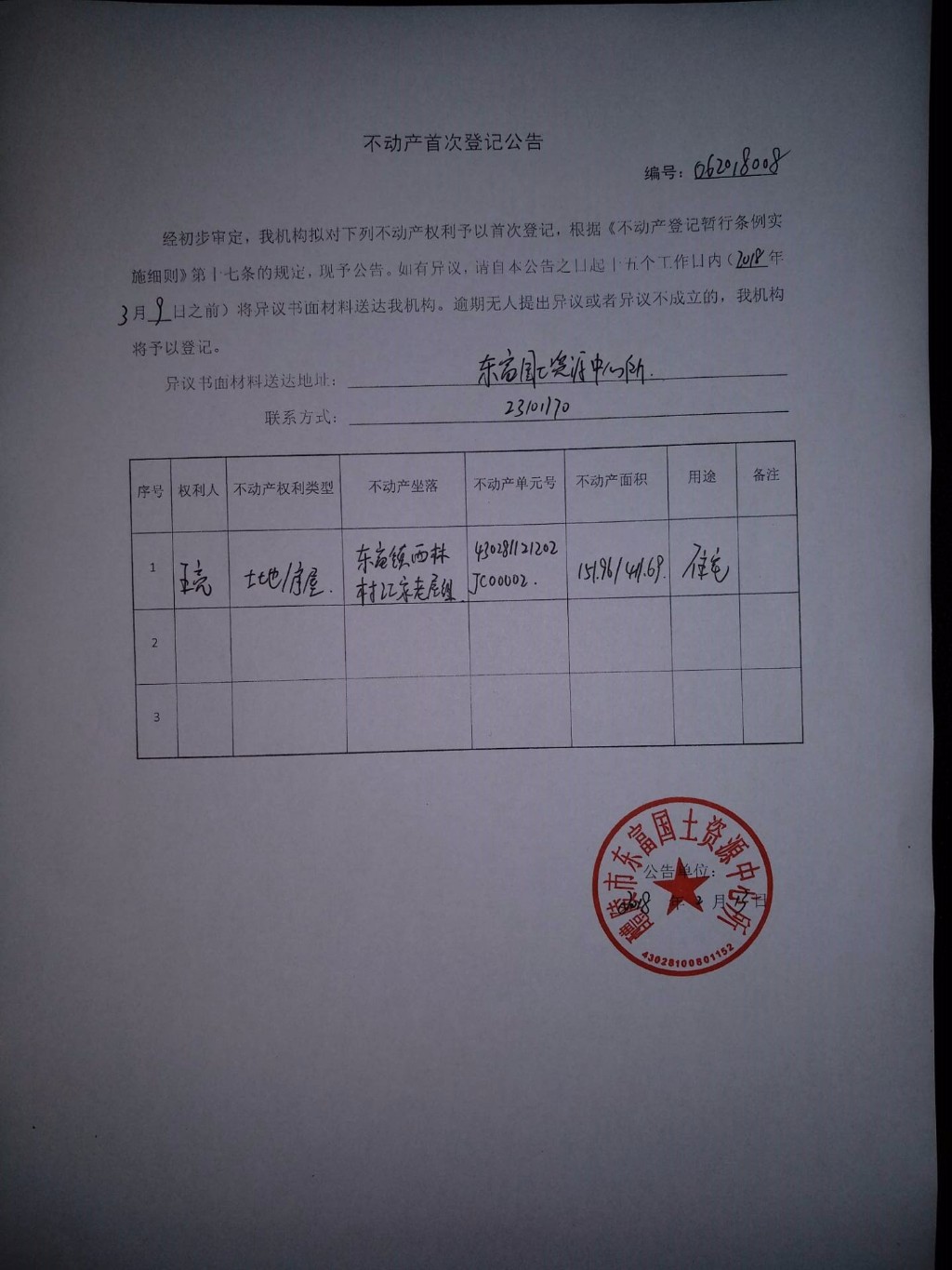 不动产首次登记公告(王亮)