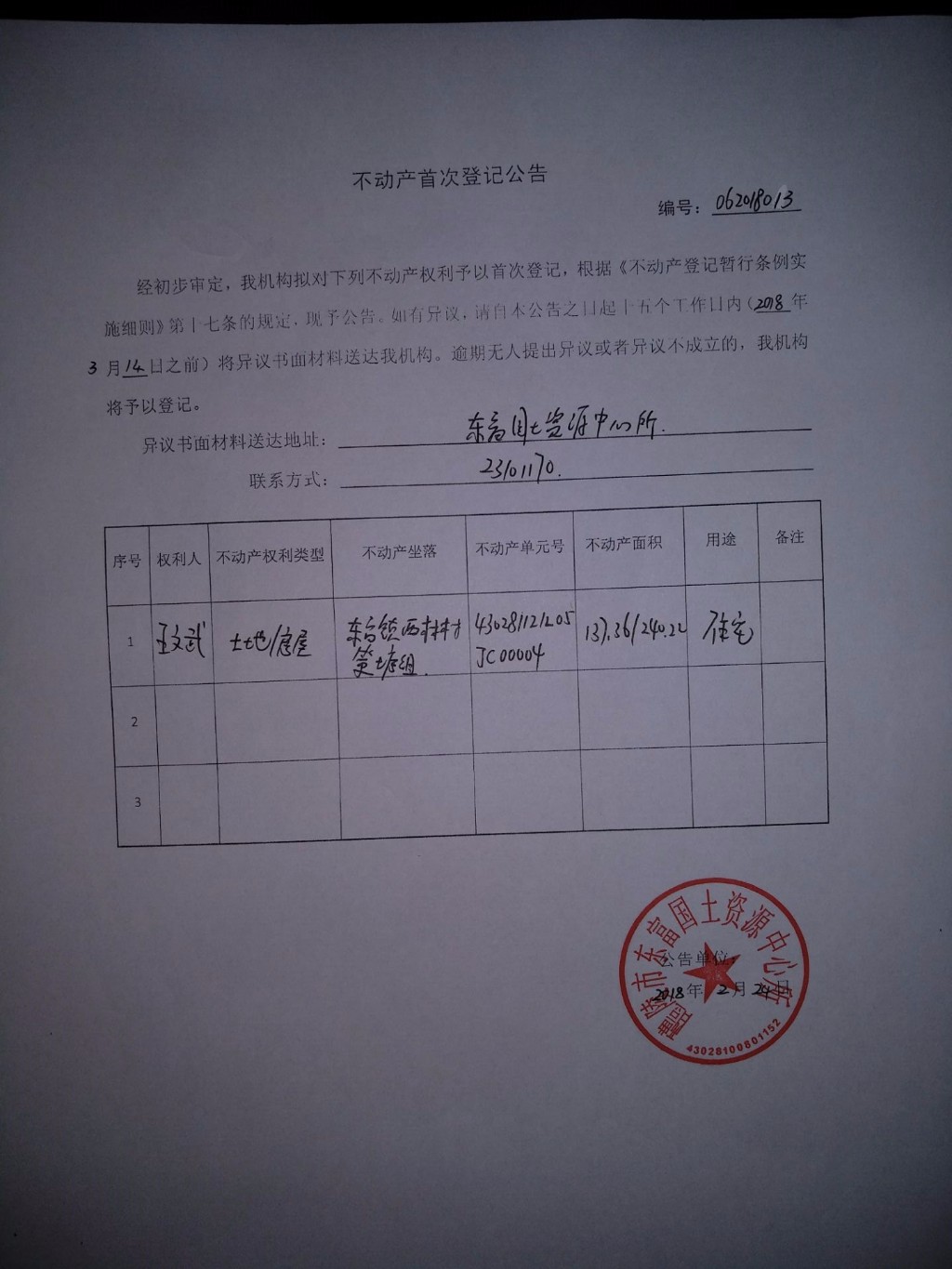 不动产首次登记公告(王文武)