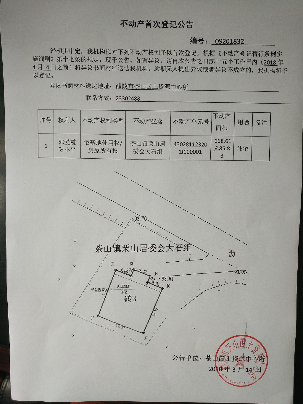 不动产首次登记公告(郭爱霞 阳小平)