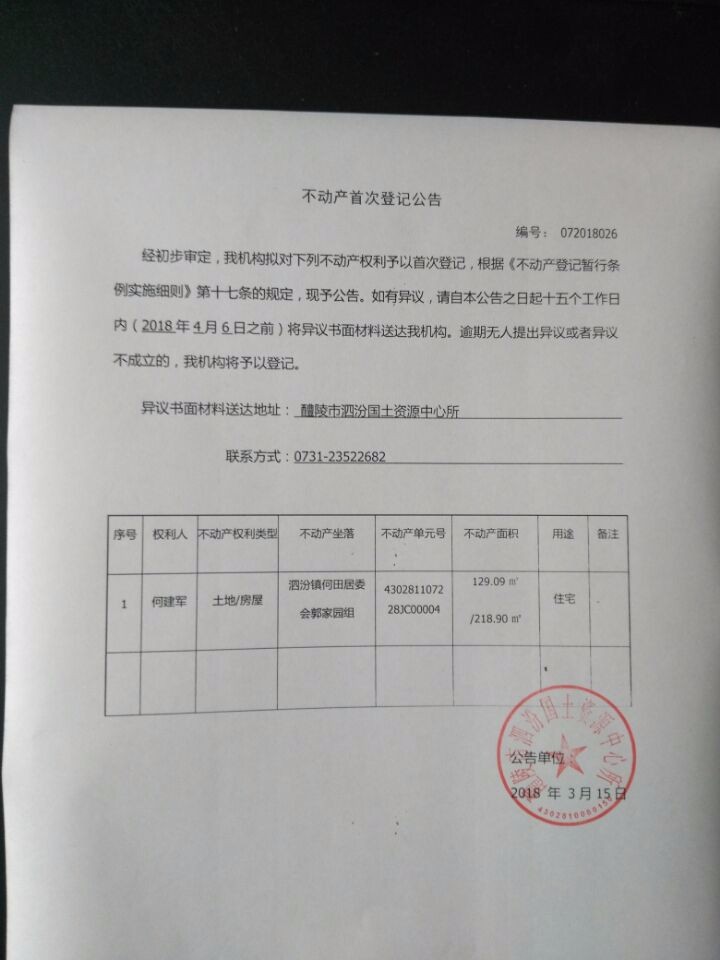 不动产首次登记公告(何建军)