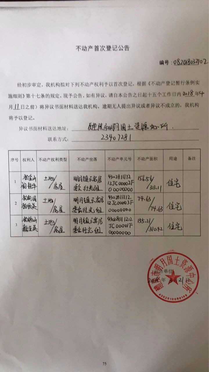 不动产首次登记公告(杨金山 杨桂华、杨新国 杨秋英、杨艳山 颜连英)