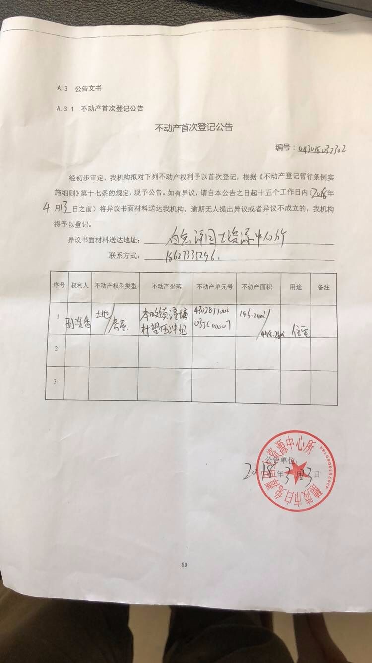不动产首次登记公告(孙炎香)