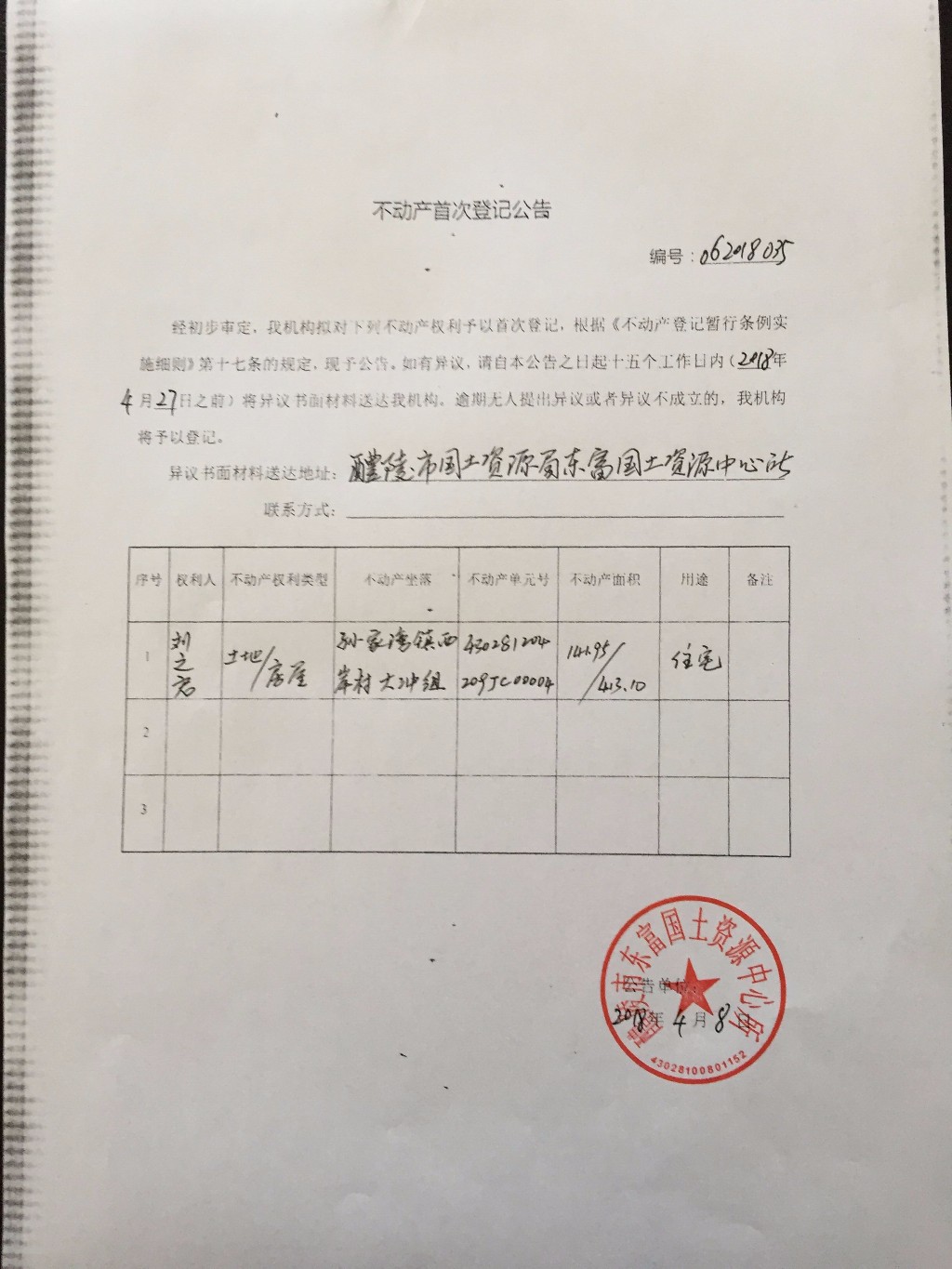 不动产首次登记公告(刘之启)