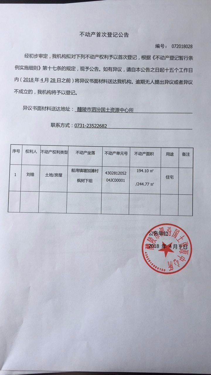 不动产首次登记公告(刘维)