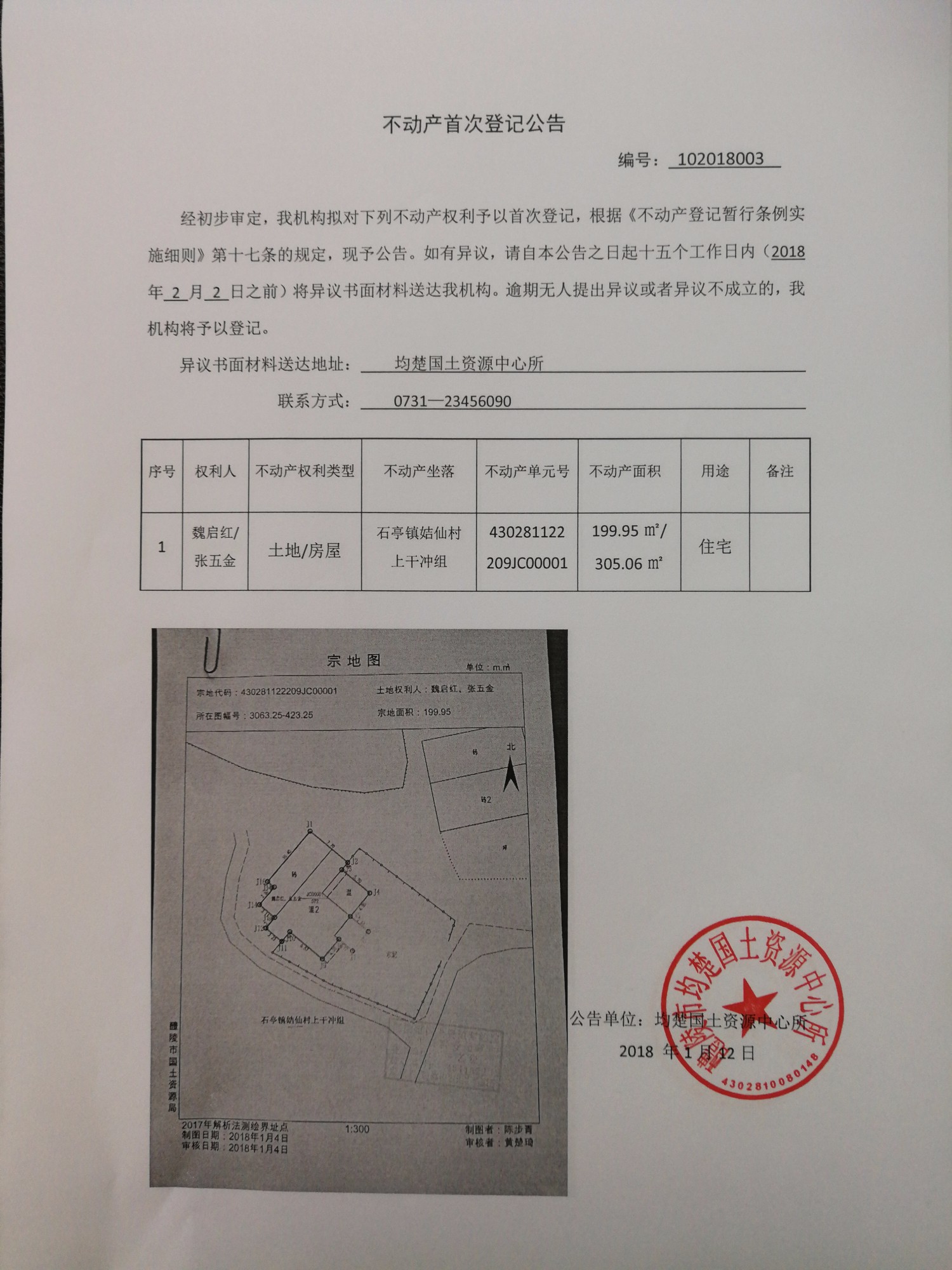 不动产首次登记公告(魏启红、张五金)