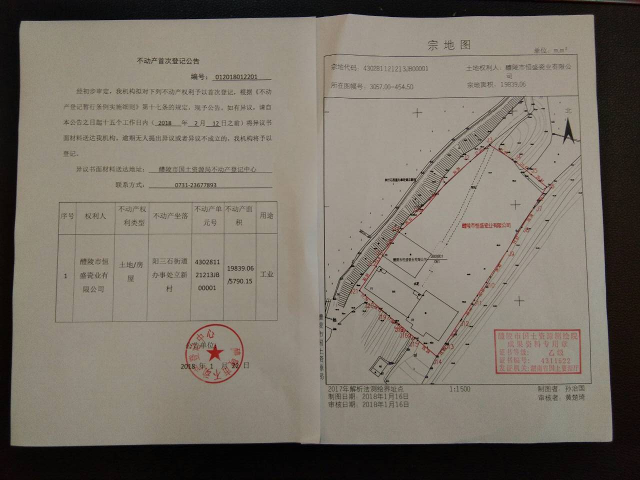 不动产首次登记公告(醴陵市恒盛瓷业有限公司)