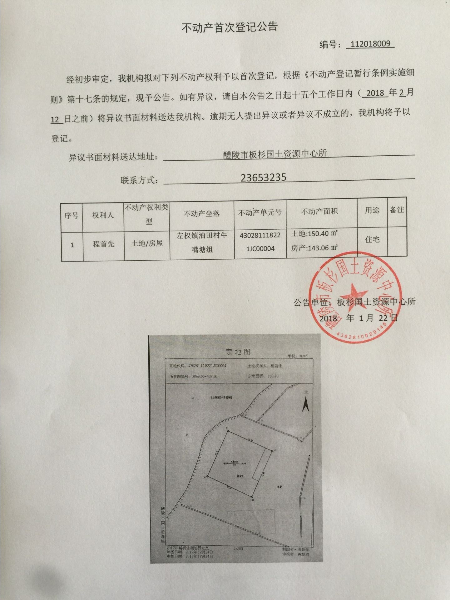 不动产首次登记公告(程首先)