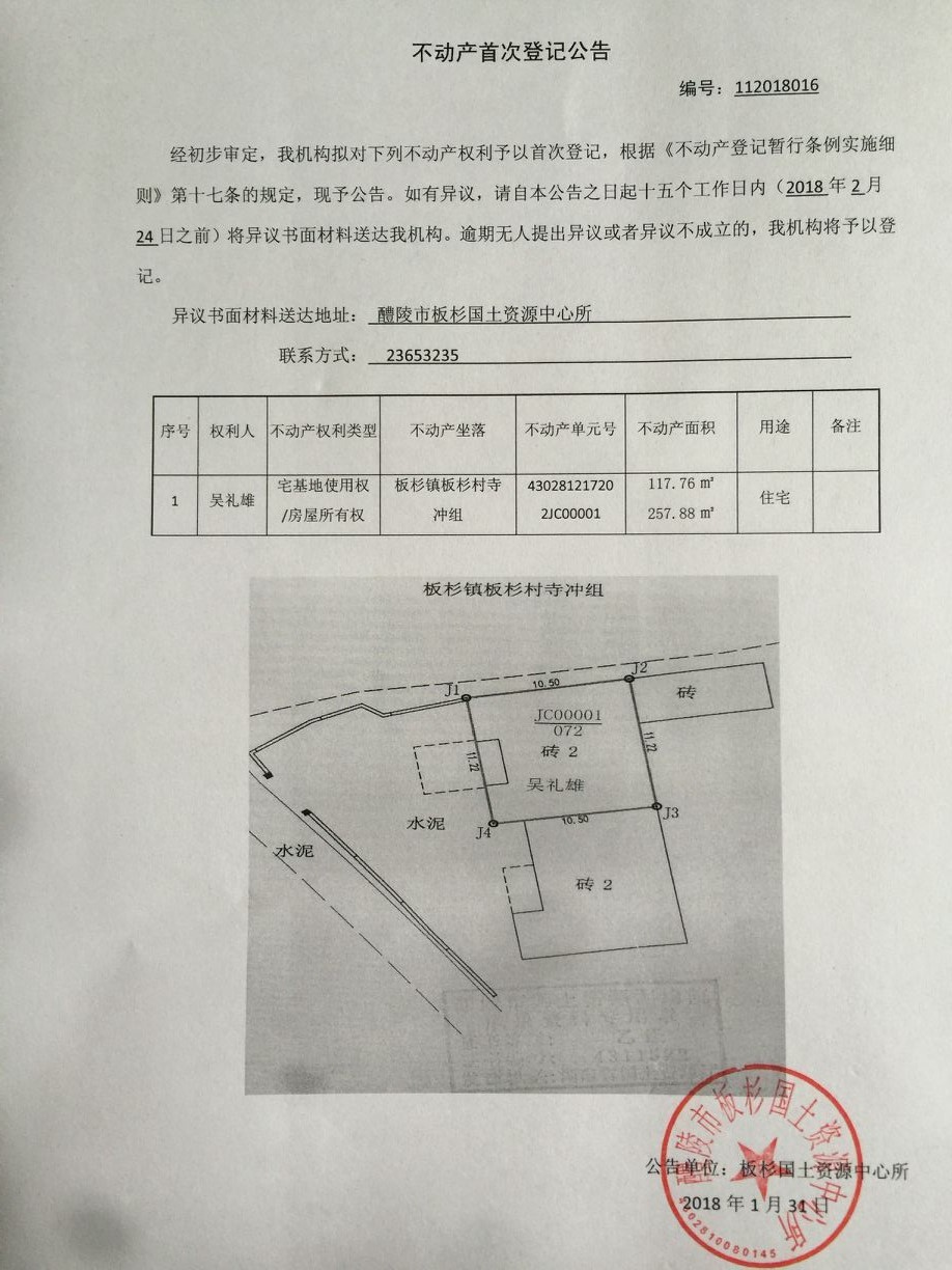 不动产首次登记公告(吴礼雄)