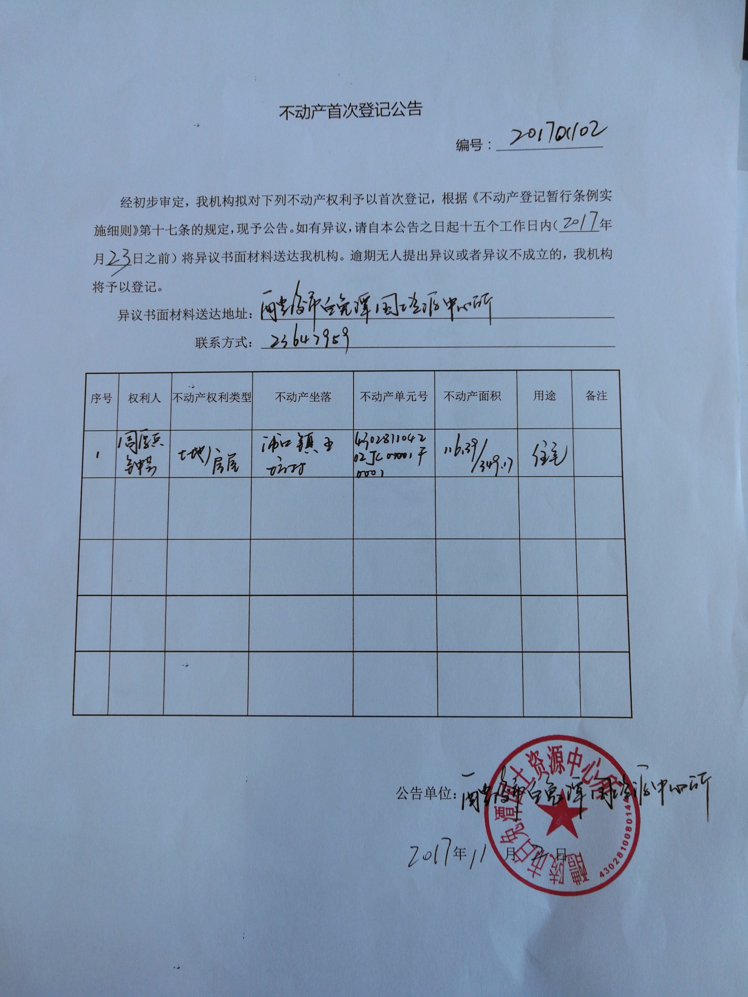 不动产首次登记公告(周厚兵 钟芸)