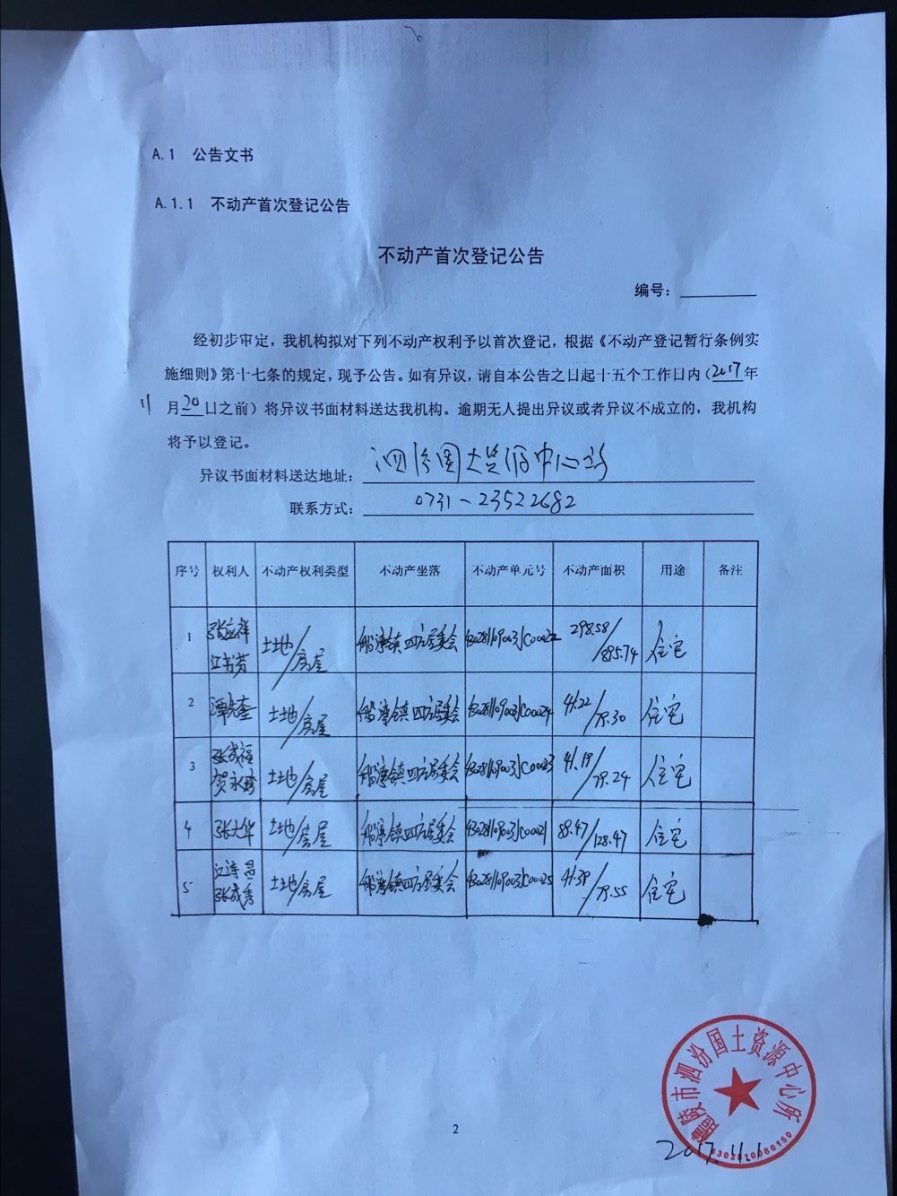 不动产首次登记公告(张应祥 江书芬 谭先奎 张成福 贺永珍 张大华 江诗昌 张成秀)