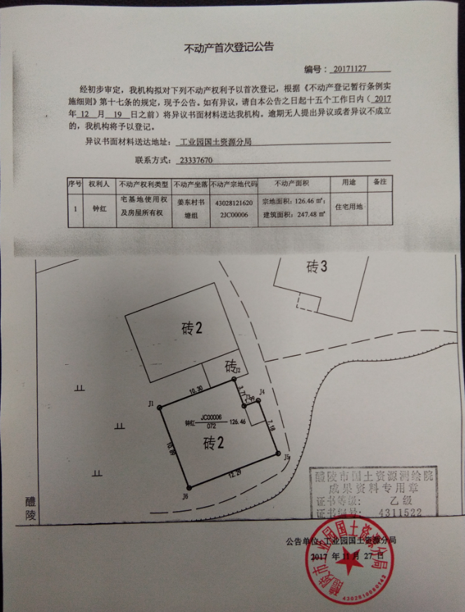 不动产首次登记公告(钟红)