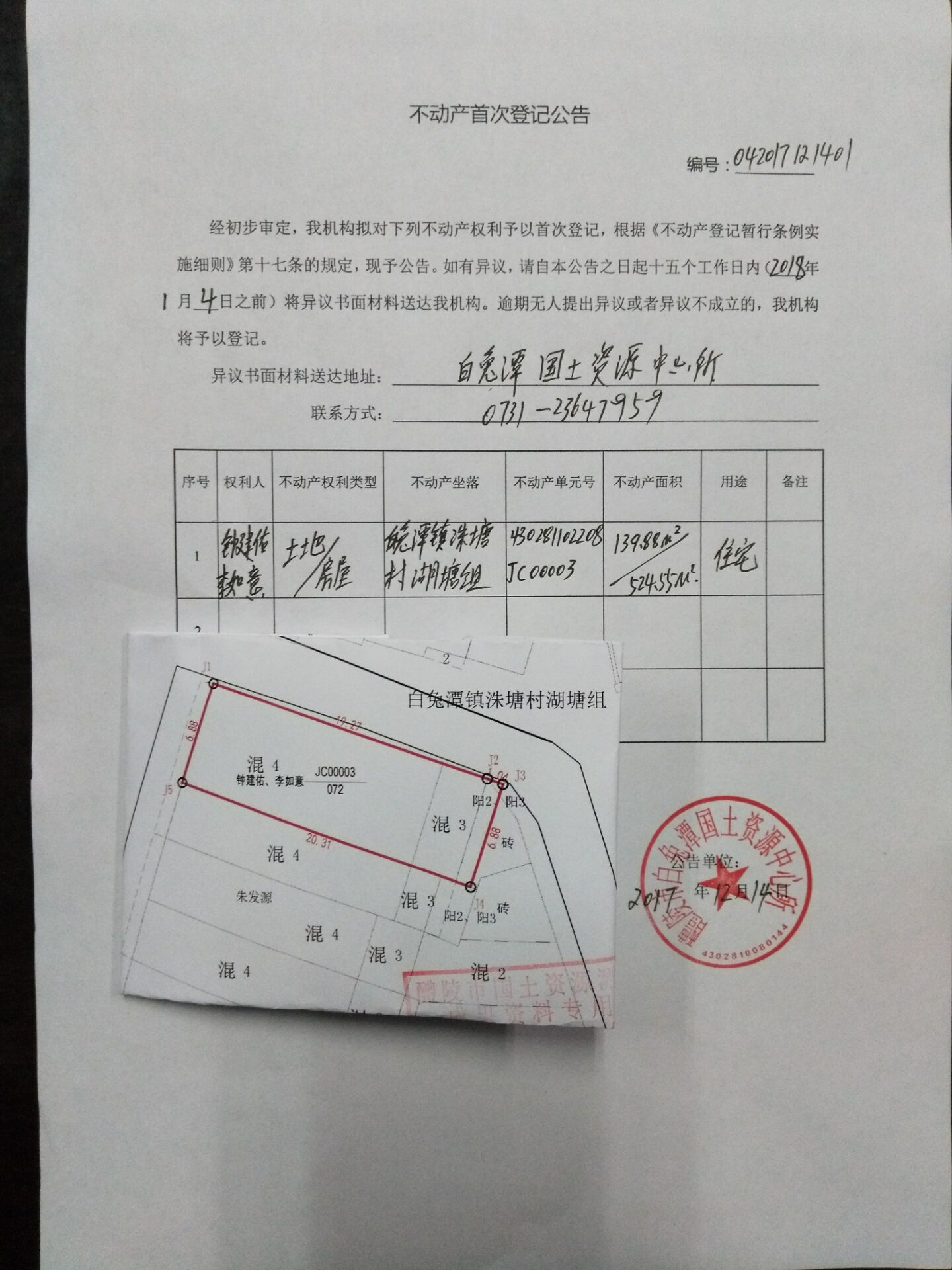 不动产首次登记公告(钟建佑 李如意)