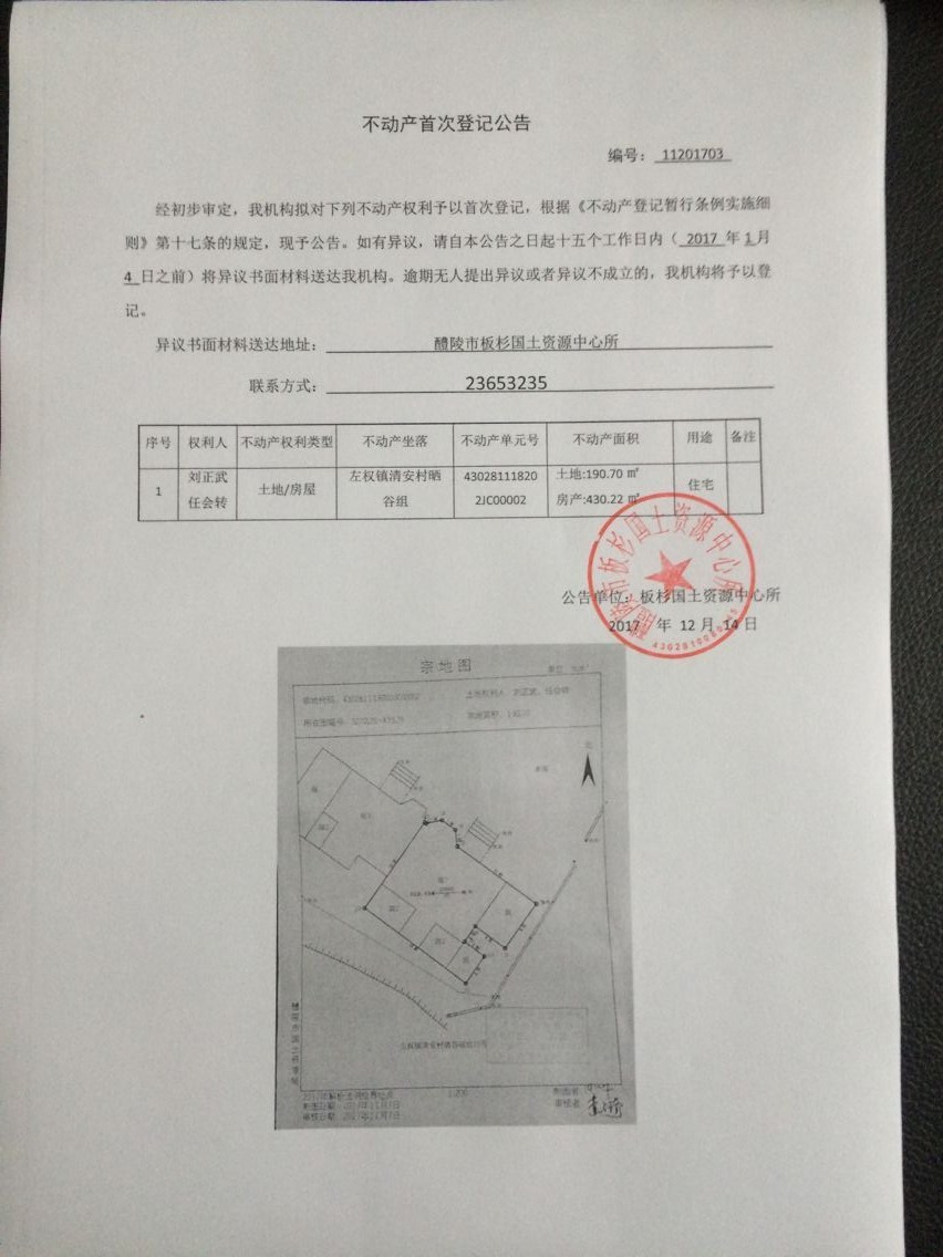 不动产首次登记公告(刘正武 任会转)