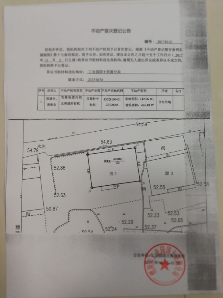 不动产首次登记公告(陈建全 黄俊良)