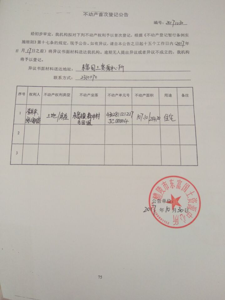 不动产首次登记公告(李井平 张海波)
