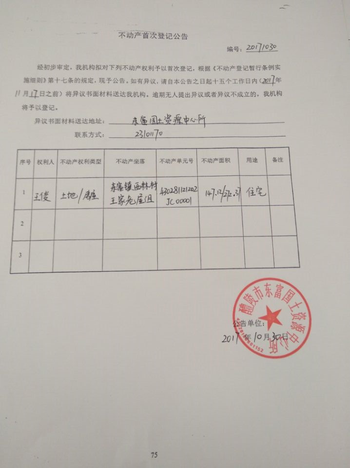 不动产首次登记公告(王俊)