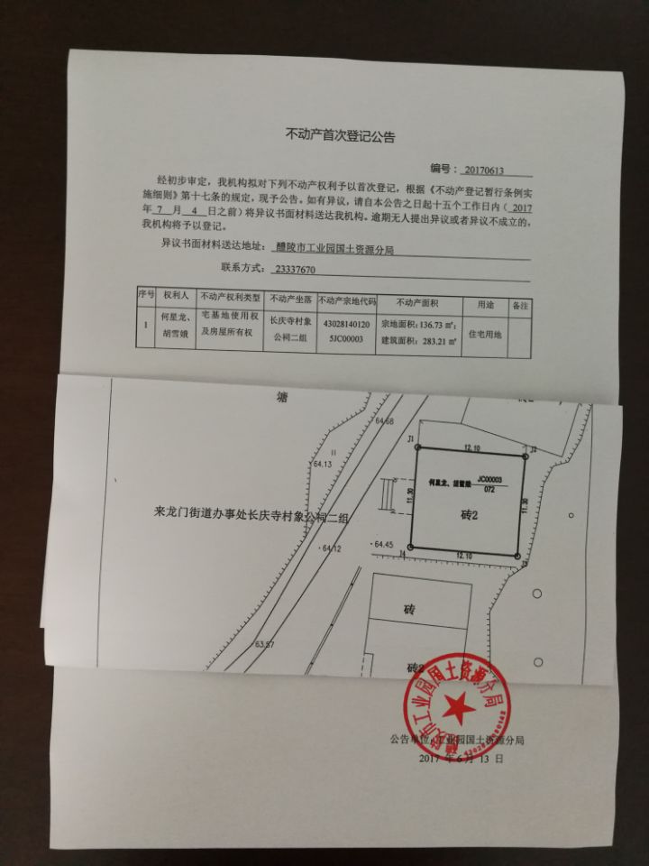不动产首次登记公告(何星龙 胡雪娥)