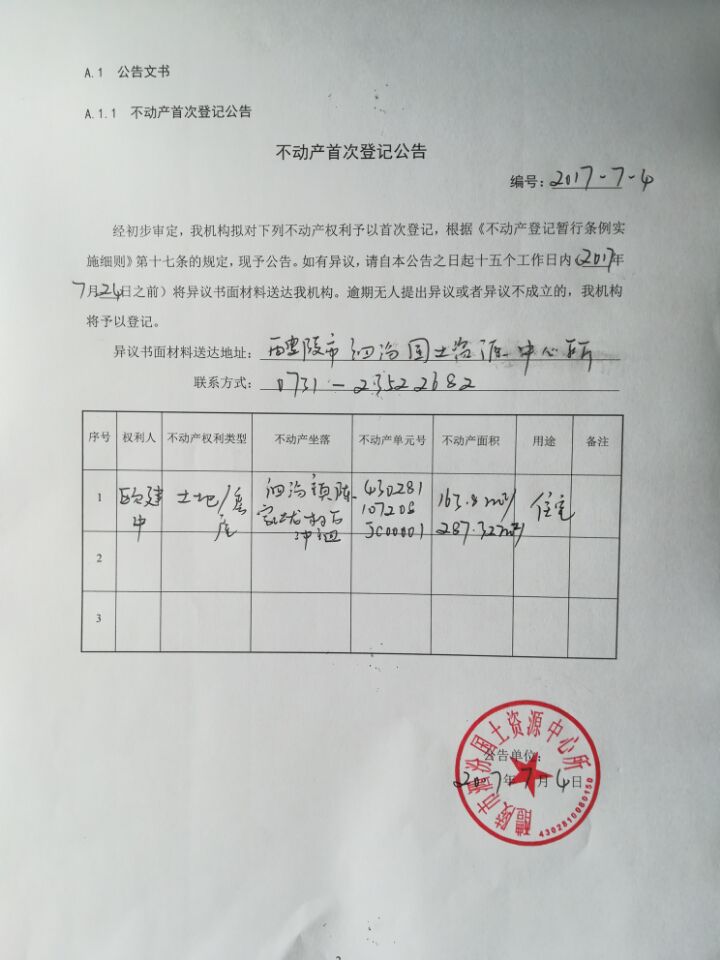 不动产首次登记公告(欧建中)
