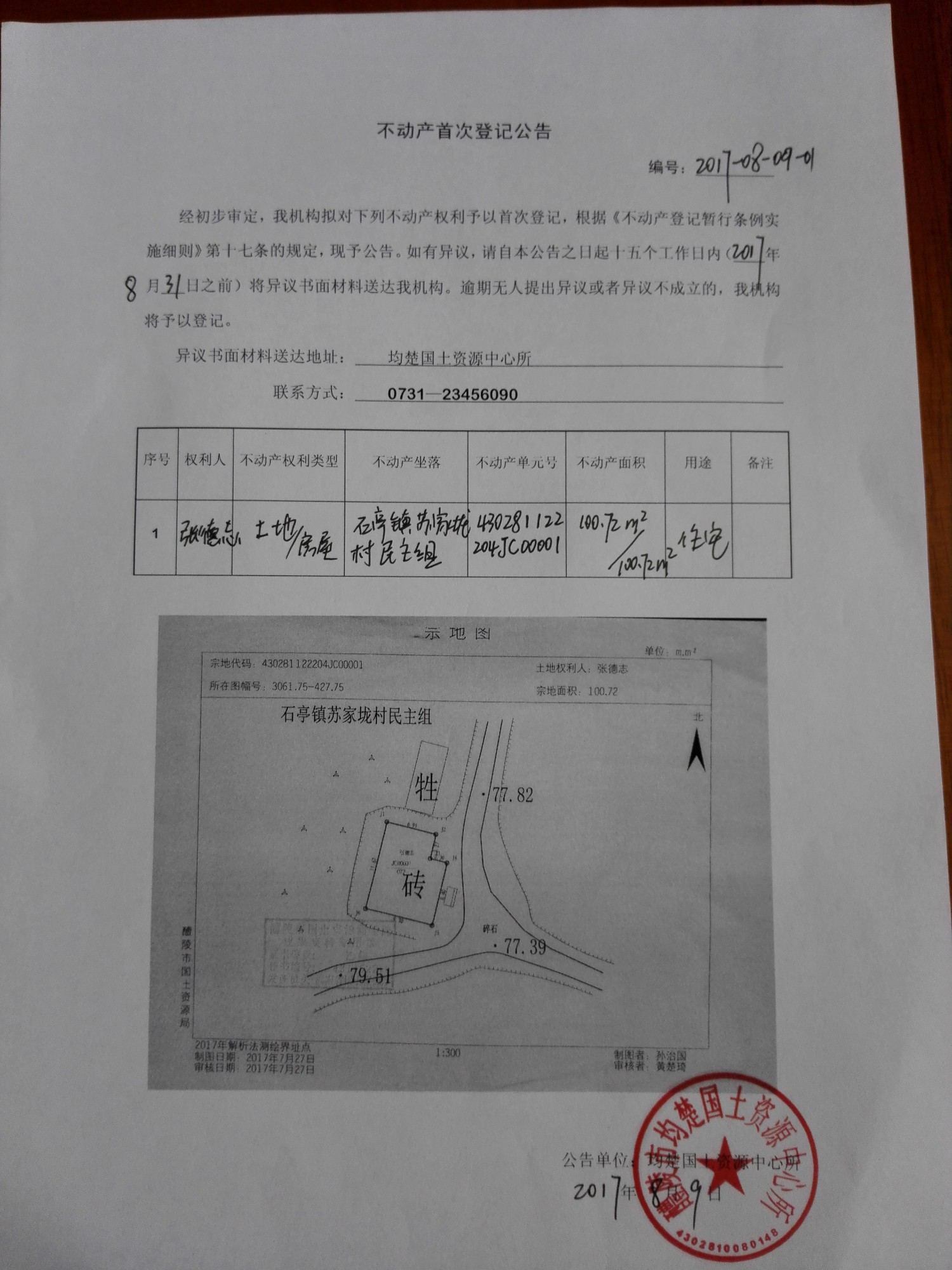 不动产首次登记公告(张德志)