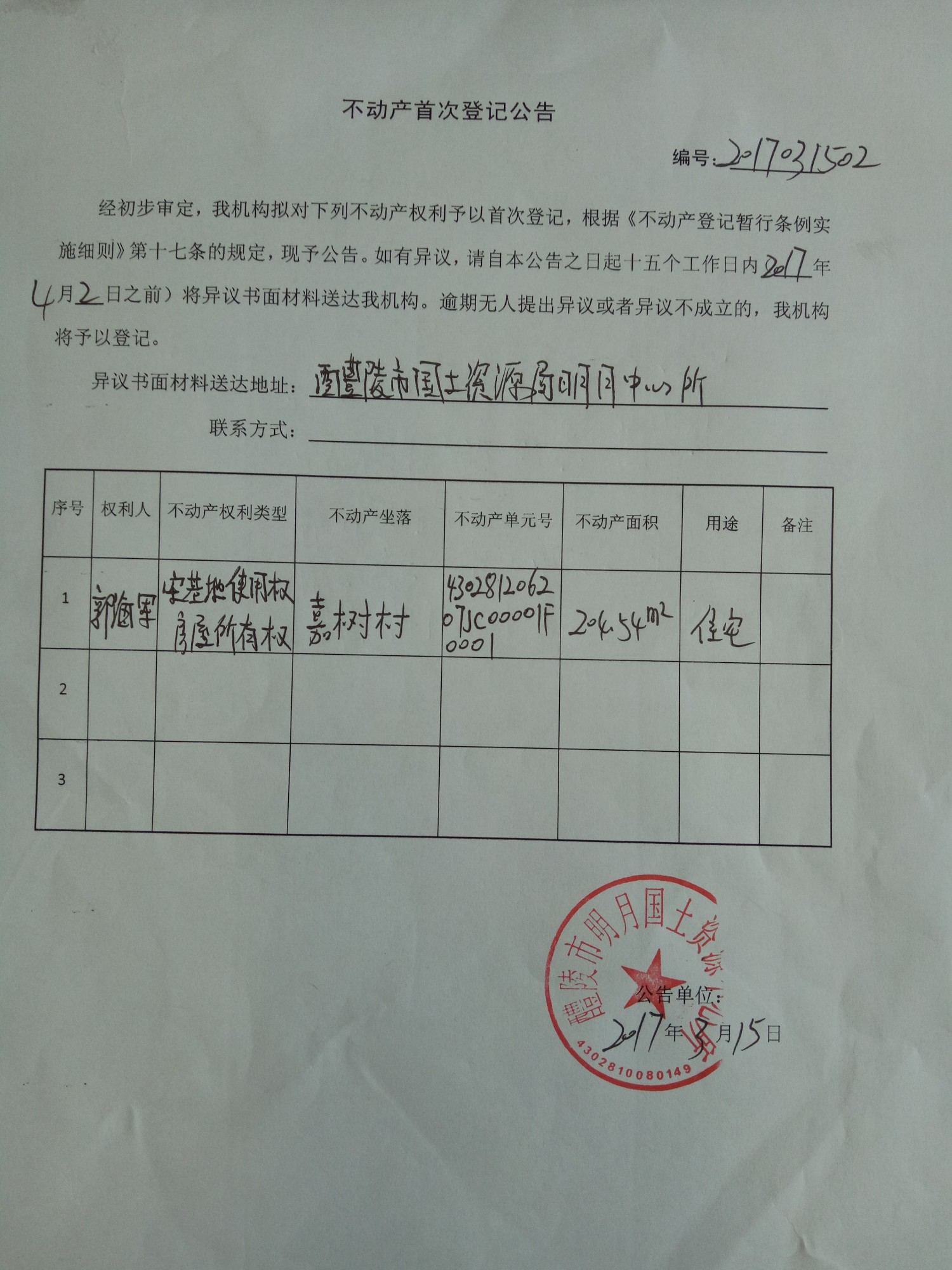 不动产首次登记公告(郭海军)