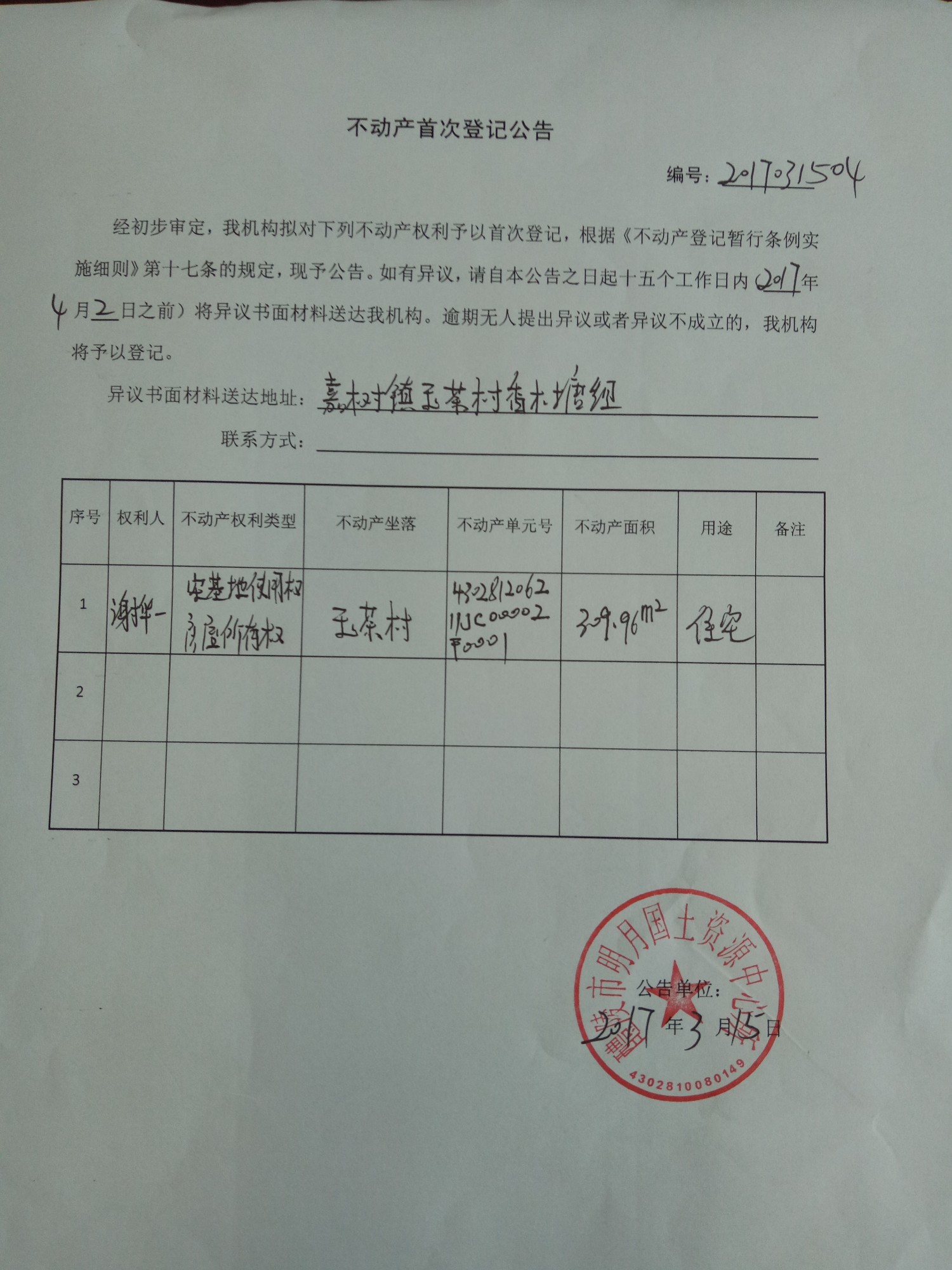 不动产首次登记公告(谢华一)