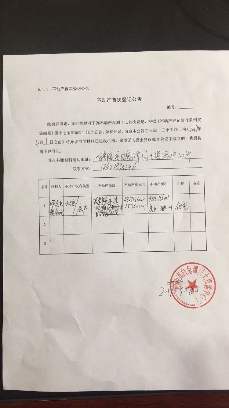 不动产首次登记公告(宋冬良、曾彩虹)