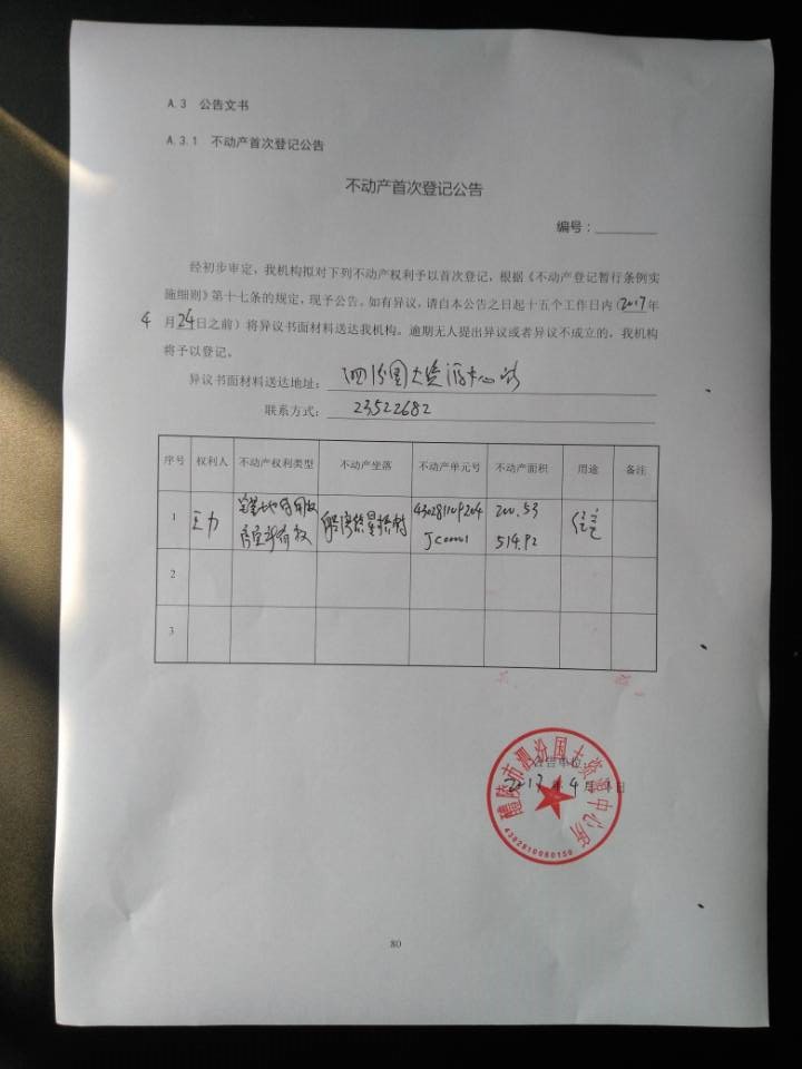 不动产首次登记公告(王力)