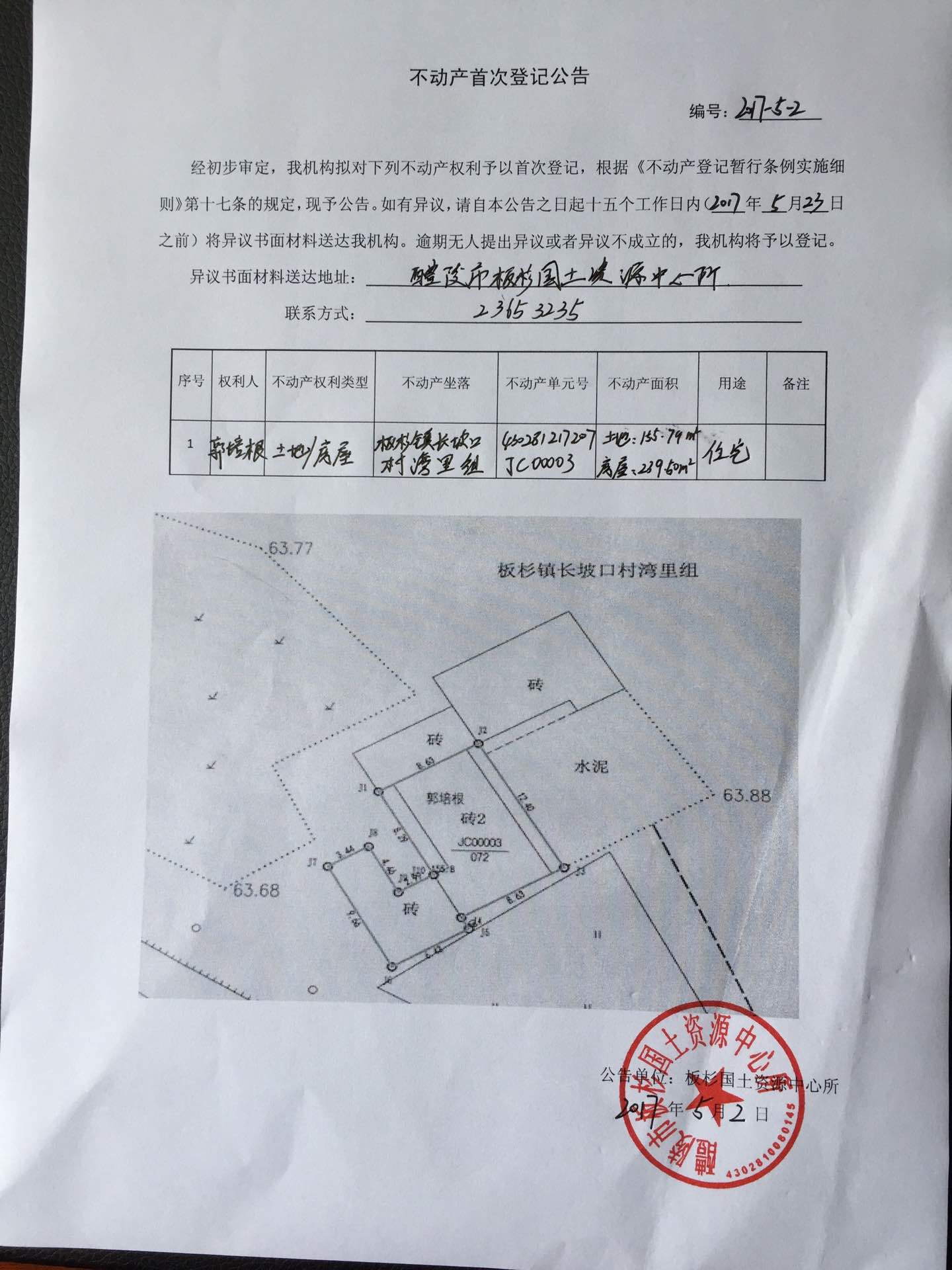 不动产首次登记公告(郭培根)