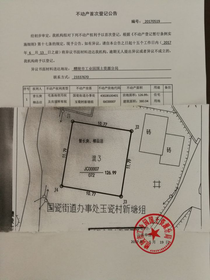 不动产首次登记公告(曾长庚 柳品洁)