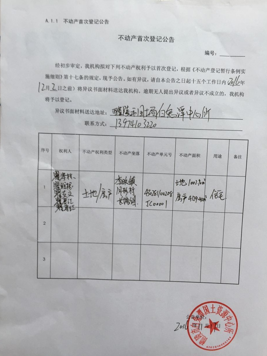 不动产首次登记公告(瞿孝林 瞿维根 瞿友文 瞿孝江 瞿孝红)