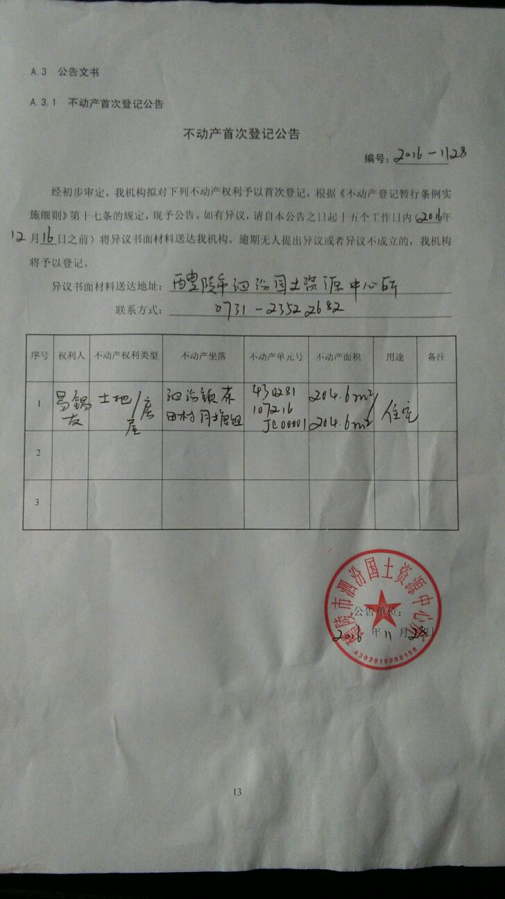 不动产首次登记公告(易锡友)