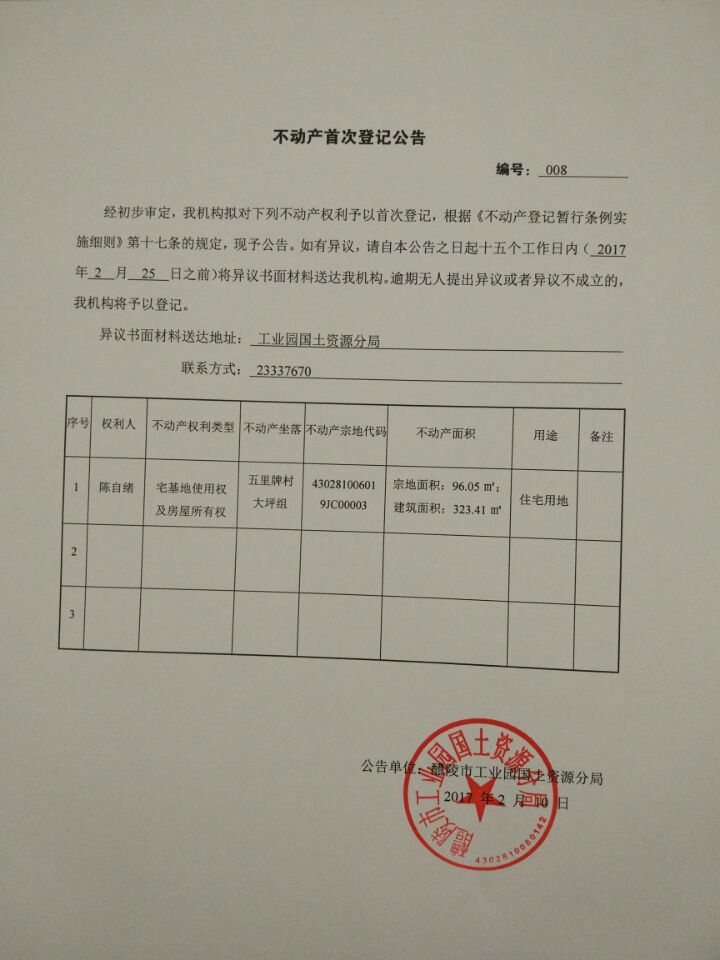 不动产首次登记公告(陈自绪)