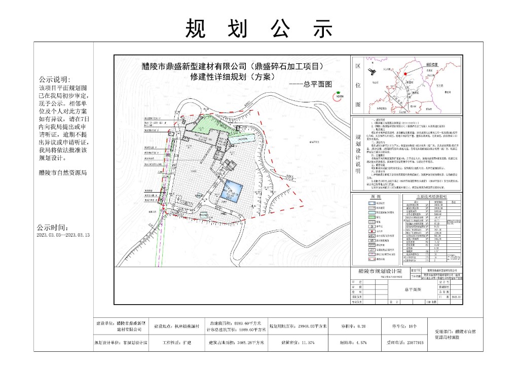 醴陵市鼎盛新型建材有限公司(鼎盛碎石加工项目)修建性详细规划(方案)规划公示