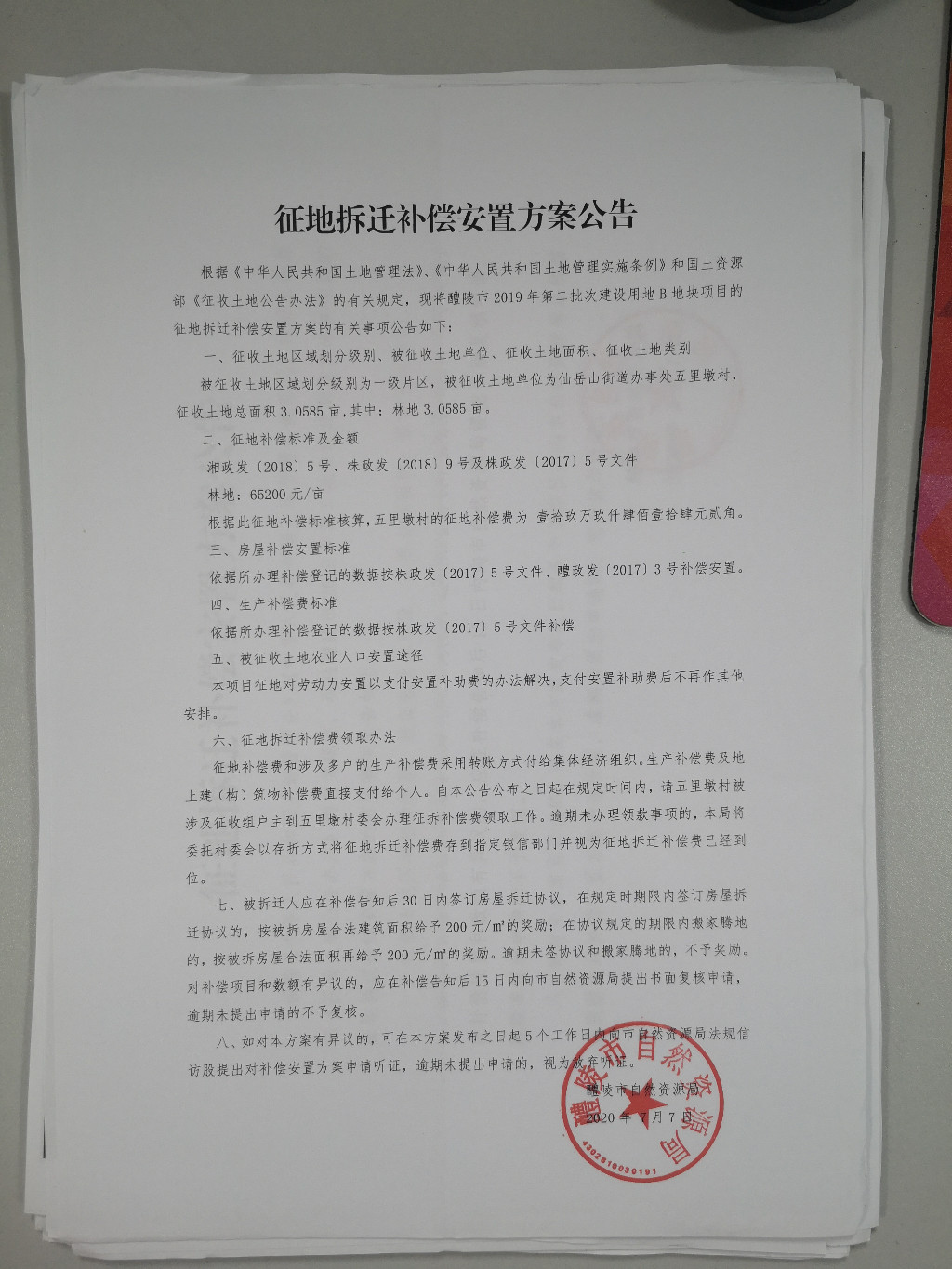 征地拆迁补偿安置方案公告(醴陵市2019年第二批次建设用地B地块)