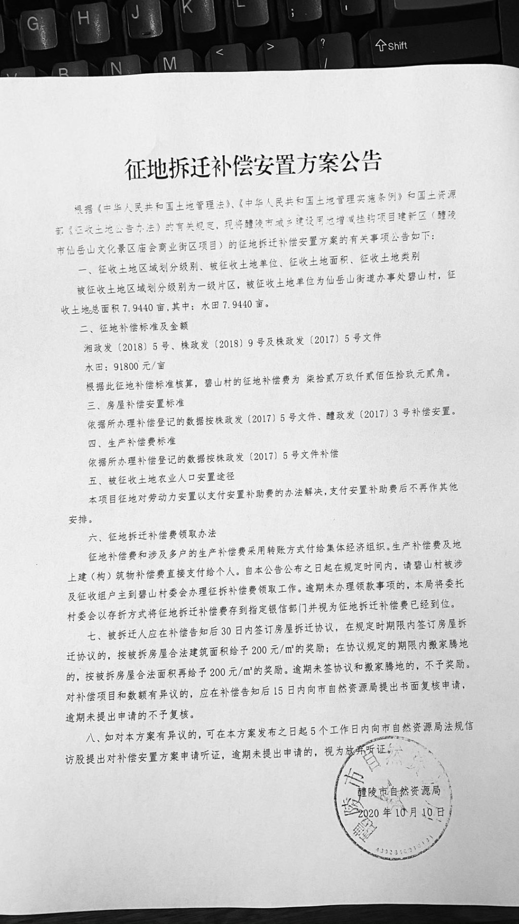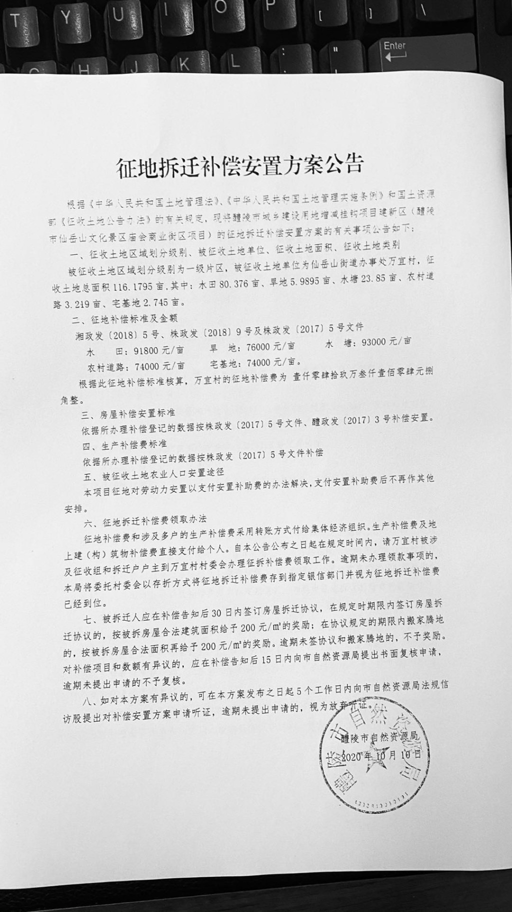 征地拆迁补偿安置方案公告(醴陵市城乡建设用地增减挂钩项目新建区 仙岳山文化景区)